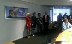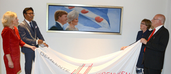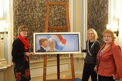 Onthulling van het door mij geschilderde portret van Koning Willem-Alexander en Koningin Máxima door burgemeester Tj. van der Zwan. Het schilderij is in opdracht gemaakt voor de Raadzaal van de gemeente Heerenveen.