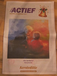 Omslag van de kersteditie van 24 december 2014 met mijn schilderij "Even Proeven" In de krant een artikel over mijn werk.